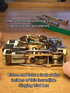 Discover a unique blend of artistry and mechanics. This exquisite Songbird Box reveals a tiny, lifelike bird that sings a beautiful, melodic tune. A timeless piece that enchants the senses.