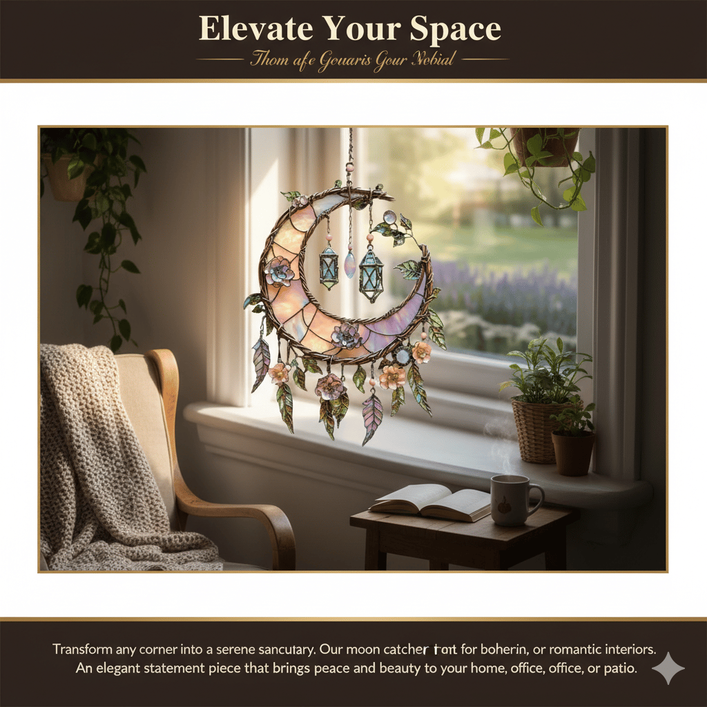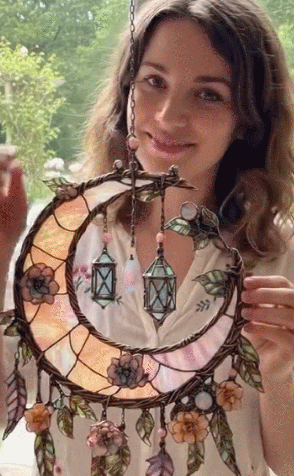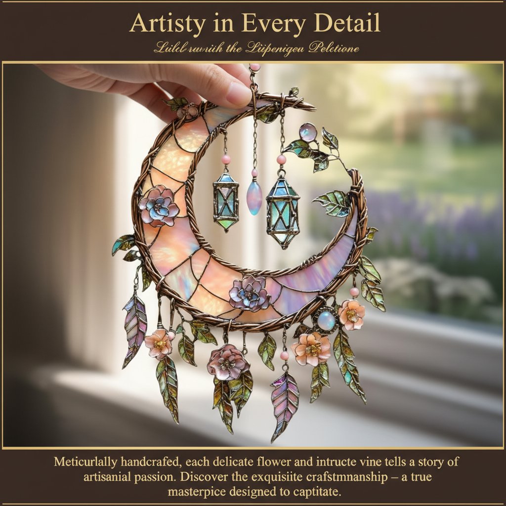Centered around a crescent moon, adorned with blossoms, leaves, and miniature lanterns. Its unique and romantic form symbolizes protection and hope.