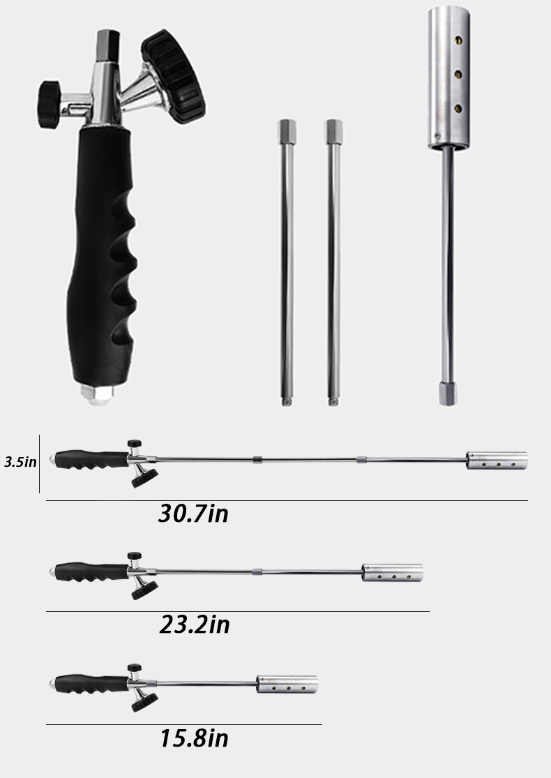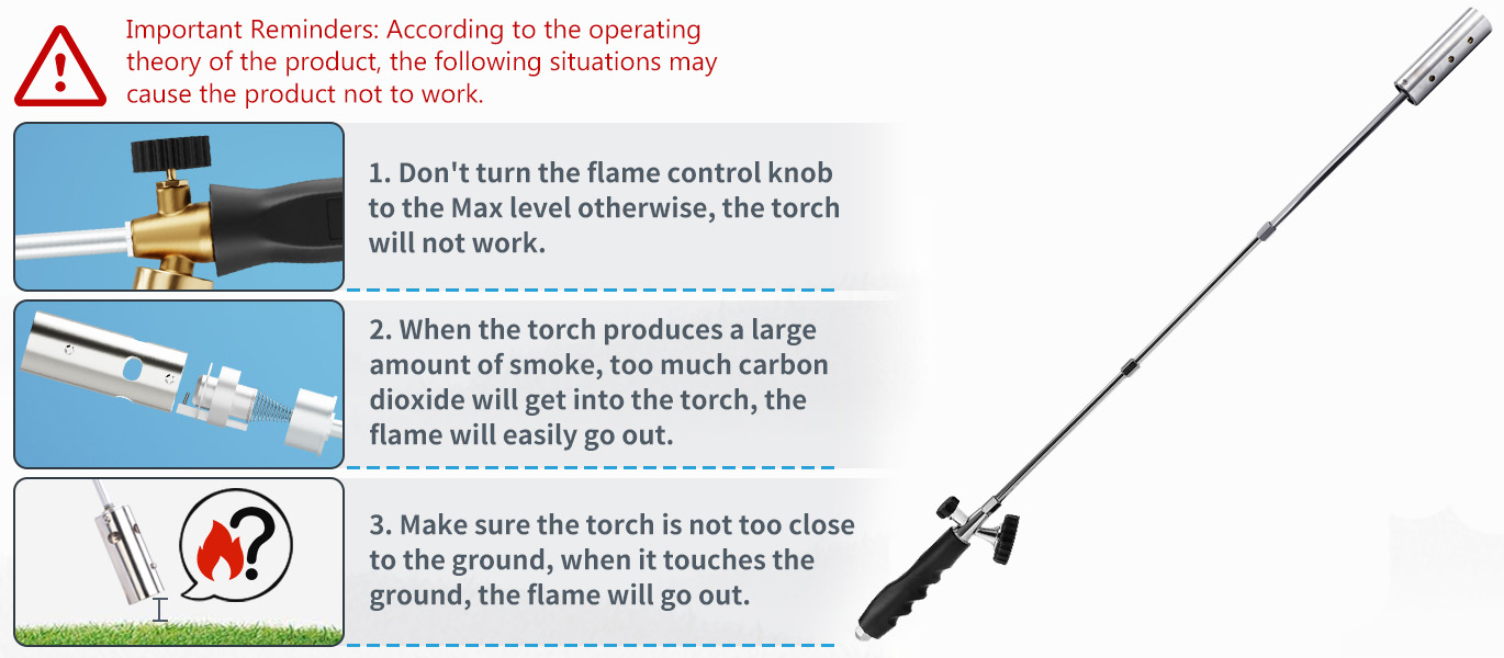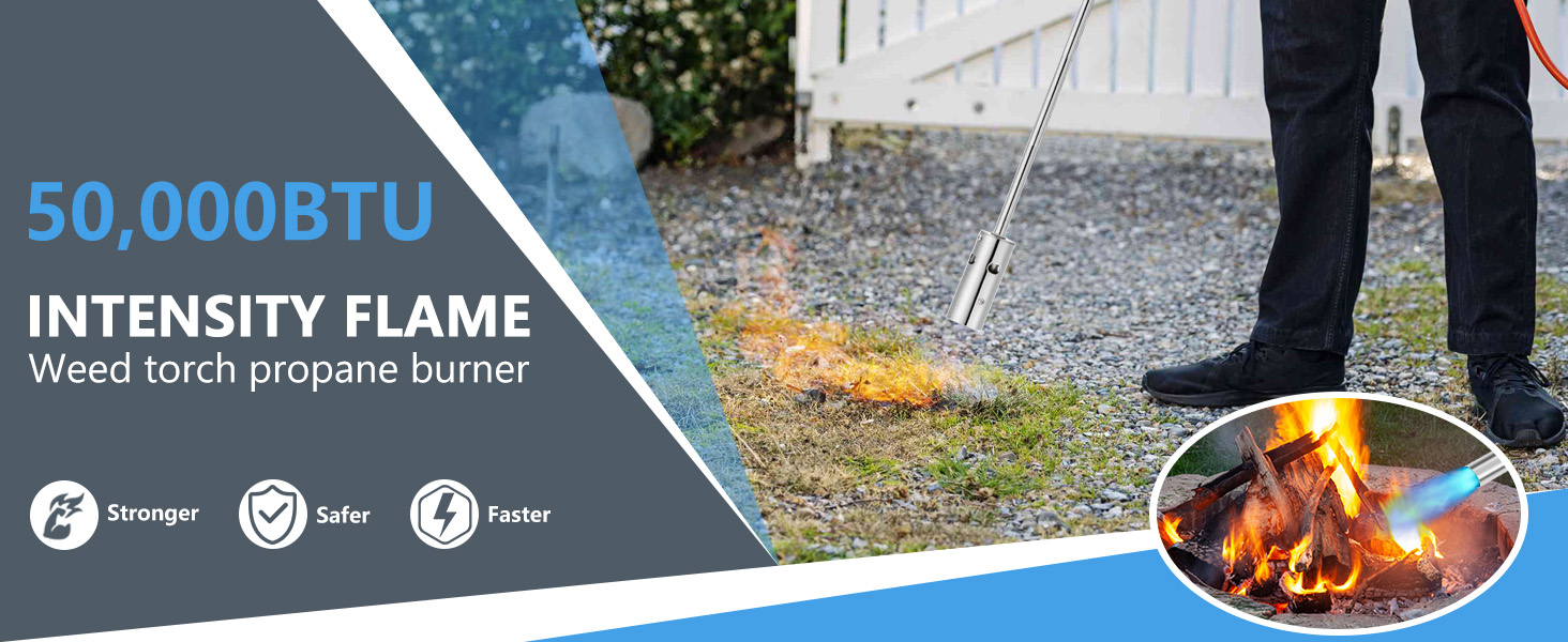【Safety】: The weed torches for outside comes with a 30" extended pole, allowing you to stay away from the flame during use, eliminating the need to bend over for weeding work and preventing backaches. Its connectors and gas canister interface are made of pure copper with a double-sealed design to ensure no gas leakage. All steel parts are heat-treated for high temperature resistance and corrosion prevention. All products undergo rigorous air tightness testing to meet high standards of safety.