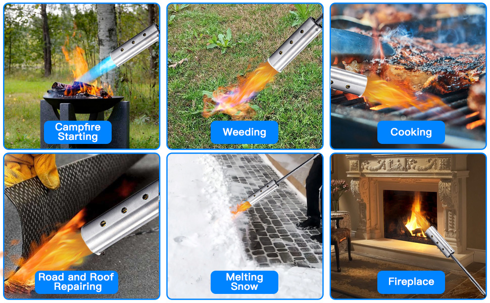 Where to Use: use this weed burner torch all the time for control weeds, starting fires, cooking on grill around your yard/patio/driveway/roads/cracks.
