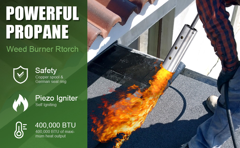 【All-Purpose Weed Burner Torch】: Weed Burning Roof Asphalt Melting, Soldering, Snow Melting, burning brush piles, Paint Removal, wood treatment, Wood Fire Starting, and Searing. Propane weed torch is Chemical Free Weeds Control.It's ideal for commercial, farms and gardens.